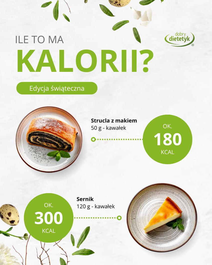 ➡️ Kawałek strucli z makiem (50 g) to ok. 180 kcal